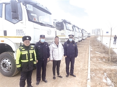 12月14日,阿拉善右旗公安局查干通格公安檢查站民警在戈壁路上,查處偽造超限運(yùn)輸車輛通行證的重型貨車17臺。