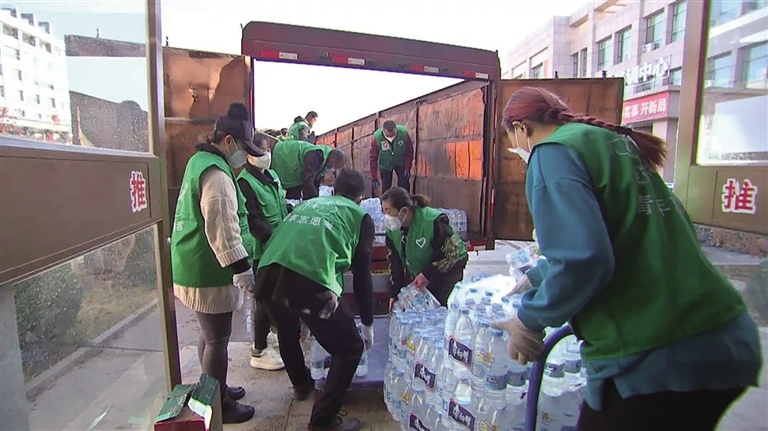 青年志愿者為支援疫情防控前線搬運物資。
