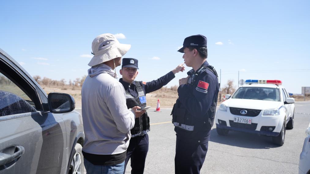 阿拉善邊境管理支隊(duì)民警在發(fā)射場(chǎng)外圍疏散來往車輛。