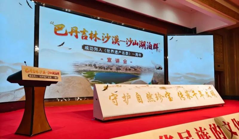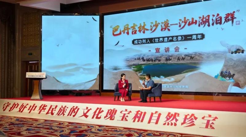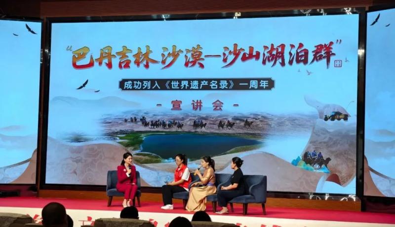 宣講會上,知名專家、一線工作者、志愿服務(wù)隊代表等宣講嘉賓和文旅從業(yè)者齊聚一堂,通過主題宣講、人物訪談的形式,共同回顧了“巴丹吉林沙漠—沙山湖泊群”申遺成功一周年以來的保護成果,立體展現(xiàn)了巴丹吉林沙漠的生態(tài)價值、保護實踐與時代意義,探討這片世界自然遺產(chǎn)的未來發(fā)展之路。