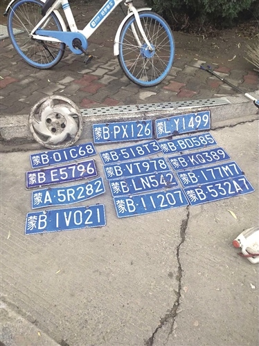 7月11日、12日的特大暴雨,造成包頭市區(qū)部分路段積水,一些車(chē)輛的車(chē)牌在行駛過(guò)程中被急流沖走。包頭市青山區(qū)城市管理綜合執(zhí)法局烏素圖環(huán)衛(wèi)所的環(huán)衛(wèi)工人們?cè)谇宄e水路段的淤泥時(shí),撿到了不少車(chē)牌。