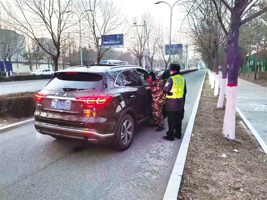 12月20日17時15分,九原區(qū)交管大隊(duì)第三警務(wù)區(qū)執(zhí)勤民警正駕駛警車在轄區(qū)巡邏清理違停車輛,當(dāng)巡邏至緯四路與經(jīng)二路交叉口時,他們發(fā)現(xiàn)一輛黑色越野車停在緯四路非機(jī)動車道內(nèi)且打著雙閃。“看到車打著雙閃燈,想著可能是車上的人有啥困難,我們就把警車開到附近,看到一名年輕男子正在車周圍焦急地來回徘徊,神情特別緊張。”執(zhí)勤民警說。