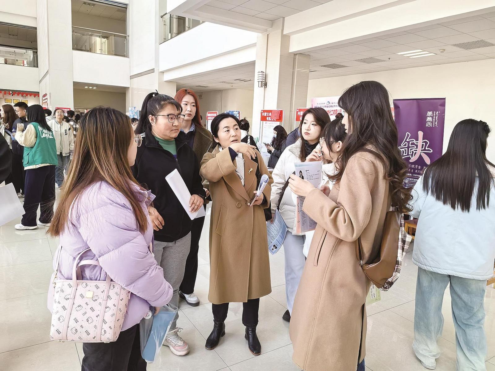此次雙選會吸引該校內(nèi)外近千名高校畢業(yè)生參與,會場企業(yè)負(fù)責(zé)人悉心講解,老師們耐心指導(dǎo)學(xué)生合理選擇。各個(gè)企業(yè)展位前學(xué)生絡(luò)繹不絕,畢業(yè)生與企業(yè)深入交流、說出自己的優(yōu)勢,推薦自己積極就業(yè)。( 李 強(qiáng) 陳明真)