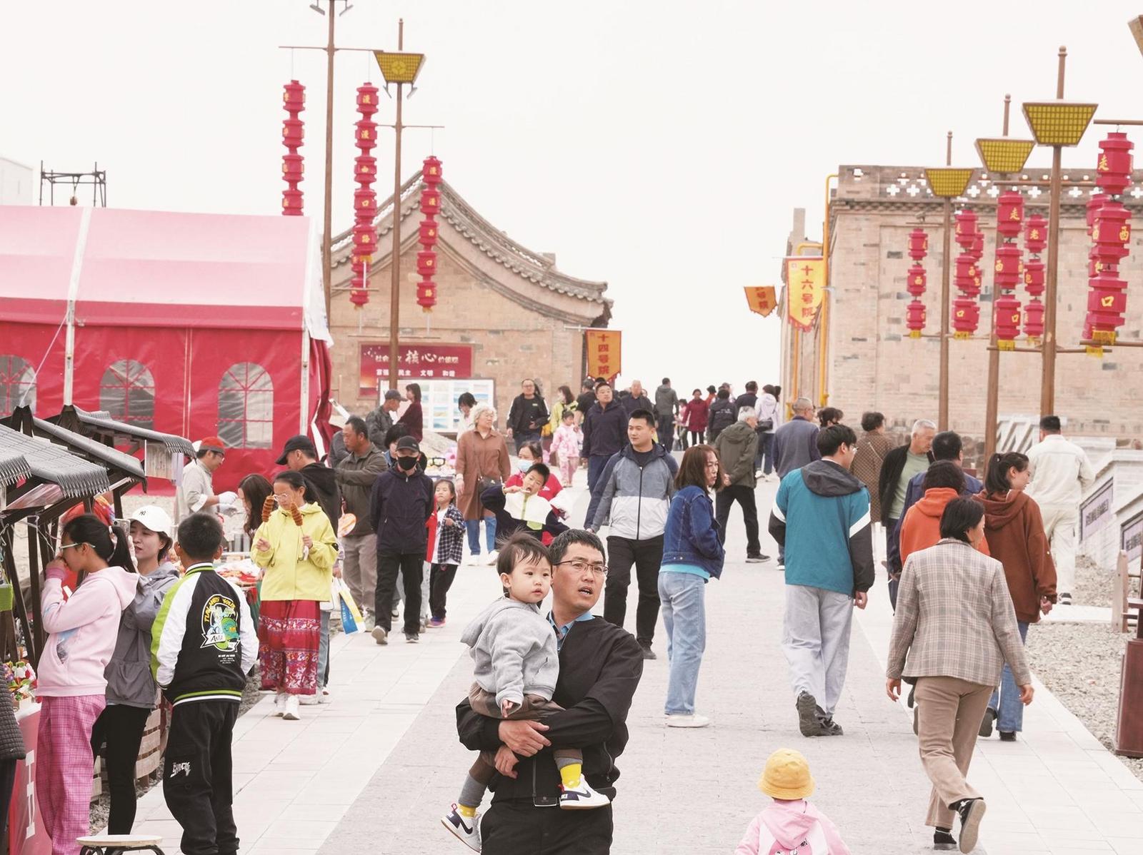 “五一”期間,老包頭走西口歷史文化街區(qū)人頭攢動。