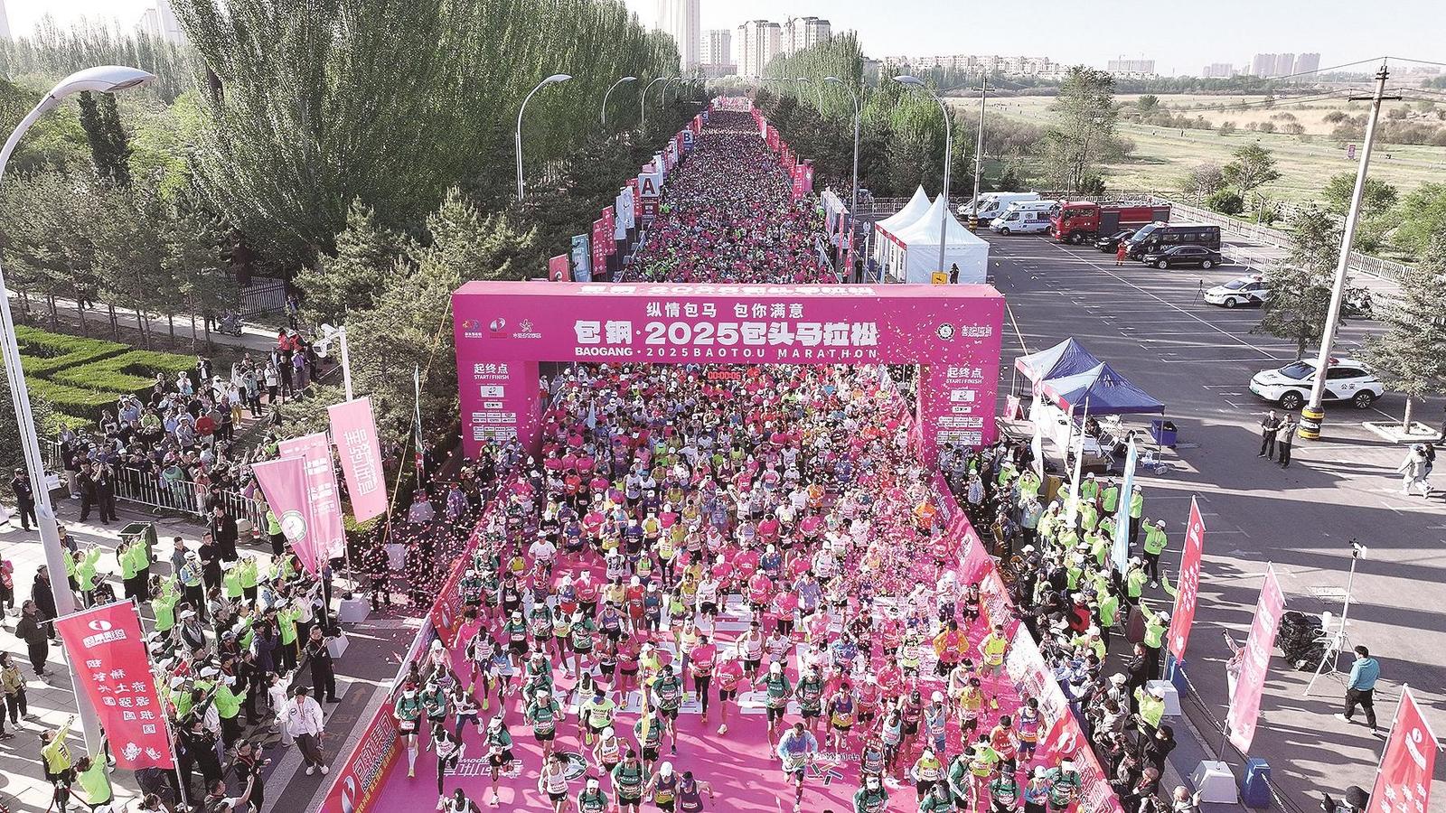 包鋼·2025包頭馬拉松賽鳴槍開跑。