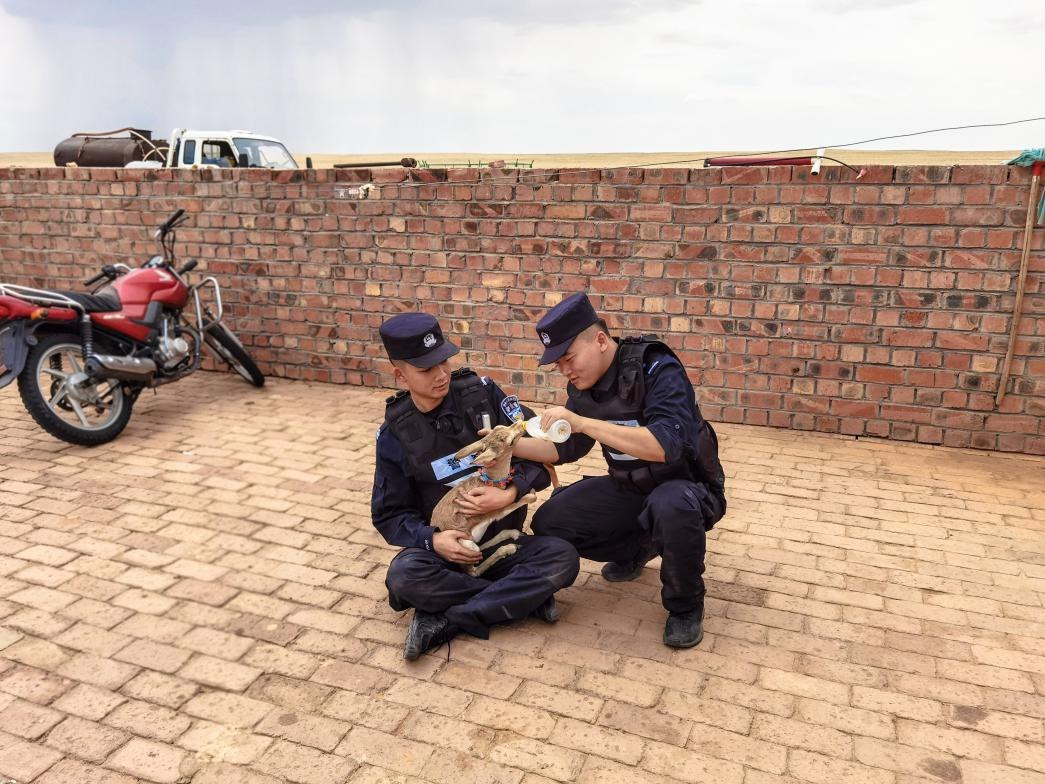 “保護(hù)和救助野生動(dòng)物是我們邊境派出所的一項(xiàng)重要職責(zé),我們?cè)谧龊眠吘彻芸毓ぷ鞯耐瑫r(shí),與護(hù)邊員、轄區(qū)牧民共同組建了一套較為成熟的‘發(fā)現(xiàn)上報(bào)、聯(lián)動(dòng)救助、移送放生’的警民聯(lián)動(dòng)救助體系,可以在最短時(shí)間內(nèi)使受傷的保護(hù)動(dòng)物得到有效救治。”甘其毛都邊境派出所所長(zhǎng)黃健介紹道。