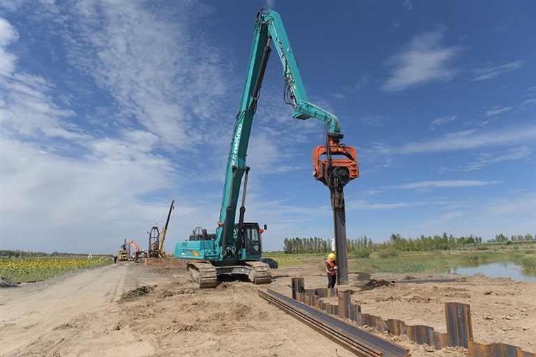 8月26日,記者在中鐵二十五局包銀高鐵工程軟基處理施工現(xiàn)場看到,各類工程車輛往來穿梭,大型機(jī)械轟鳴作業(yè),頭戴安全帽的工人們在各自崗位上有序作業(yè)。