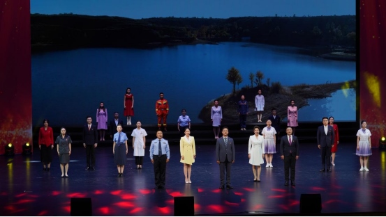 當(dāng)天,舞蹈《火種》拉開了詩歌誦讀會(huì)的序幕。本次詩歌朗誦會(huì)從“紅色記憶”“信仰相隨”“奮進(jìn)新程”三個(gè)篇章依次展開,共14個(gè)紅色主題作品。表演者用心感悟、用情演繹,或鏗鏘有力、或婉轉(zhuǎn)悠揚(yáng)、或慷慨激昂,以集體誦讀、個(gè)人誦讀、情景劇表演等不同風(fēng)格、不同表現(xiàn)形式,將《我是一艘船》《紅色家書》《重逢》《黨啊,我的母親》《英雄》《信念永恒》《我們從哪里來—鄂前旗的紅色記憶》《我如果贊你》《奮進(jìn)有我》等紅色經(jīng)典篇章盡情呈現(xiàn)。一篇篇紅色經(jīng)典作品,表達(dá)著對(duì)中國(guó)共產(chǎn)黨百年來帶領(lǐng)中國(guó)人民艱苦奮斗、與時(shí)俱進(jìn)、奮斗追夢(mèng)的偉大實(shí)踐的贊頌,處處展現(xiàn)了鄂托克前旗廣大黨員干部群眾昂揚(yáng)奮進(jìn)的精神風(fēng)貌。