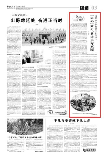 2025年12月2日,《中國(guó)民族報(bào)》第3版刊發(fā)題為《內(nèi)蒙古達(dá)拉特旗工業(yè)街道:“同心”聚力,共建美好家園》的文章,報(bào)道了內(nèi)蒙古達(dá)拉特旗工業(yè)街道以“同心共建、同心共學(xué)、同心共事、同心共樂”的“四心四共”工作法賦能基層治理。打造“同心向暖·花開工業(yè)”民族工作品牌,將民族團(tuán)結(jié)融入基層治理各環(huán)節(jié),奏響了開放包容、融榮共居的和諧樂章。