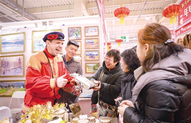 1月16日,來(lái)自俄羅斯的客商正在向首府市民介紹特色食品。當(dāng)日,第五屆呼和浩特市年貨博覽會(huì)在內(nèi)蒙古國(guó)際會(huì)展中心開(kāi)幕,來(lái)自國(guó)內(nèi)外的近千家企業(yè)帶來(lái)了琳瑯滿目各具特色的年貨,其中不少國(guó)外產(chǎn)品受到青睞,眾多市民根據(jù)自己的喜好淘到了心儀的精品年貨。本屆年貨博覽會(huì)將持續(xù)到1月31日。