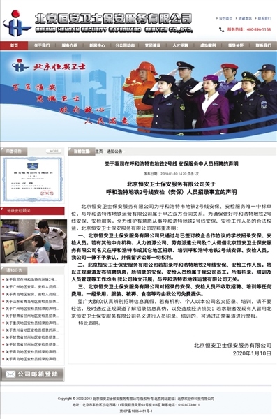 除了1號(hào)線和2號(hào)線安保,恒安衛(wèi)士還將為即將開通的地鐵2號(hào)線提供安檢服務(wù)。事實(shí)上,恒安衛(wèi)士近年來多次在全國多個(gè)城市引起地鐵安保安檢員高價(jià)招聘亂象。記者從恒安衛(wèi)士官網(wǎng)上看到,2015年9月至2020年1月,恒安衛(wèi)士先后發(fā)布20次聲明,就其公司在廣州、青島、南昌、南寧、蘭州、貴陽、重慶等城市引起高價(jià)招聘地鐵安檢、安保人員亂象做出辯解。最近的一次,則是1月20日發(fā)布的《關(guān)于我公司在呼和浩特市地鐵2號(hào)線安保服務(wù)中人員招聘的聲明》。