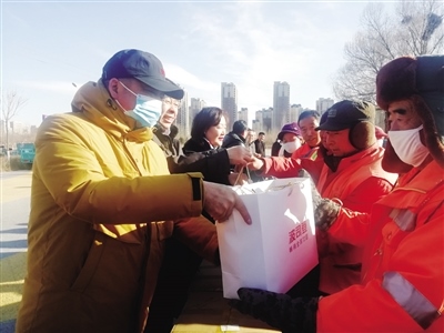 裴永志告訴呼和浩特晚報記者:“我們夫妻經營著一家民營企業(yè),2017年冬季的一天,我出差辦事,當天早上7點多就趕到了機場,天氣非常寒冷。到了機場,看到有幾名環(huán)衛(wèi)工人正在打掃路邊的衛(wèi)生,其中一名年齡較大的環(huán)衛(wèi)工人摘下手套拾撿路邊的煙頭等垃圾。我當時非常感動,覺得環(huán)衛(wèi)工人平凡而又偉大,于是,就想著為他們做點什么。出差回來后,我把想法告訴了妻子,沒想到妻子也非常支持,最終,我們決定為環(huán)衛(wèi)工人捐贈棉衣。之后便與賽罕區(qū)環(huán)衛(wèi)局的工作人員進行對接。當年,我們自籌了15萬元,購買了206件棉衣,捐贈給了環(huán)衛(wèi)工人?!?/p>