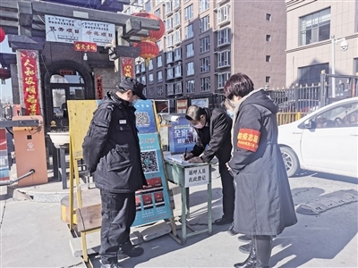 記者跟隨工作人員來到轄區(qū)地新街坊小區(qū),幾名社區(qū)工作人員正在小區(qū)門口負(fù)責(zé)疫情防控,“您好!請(qǐng)問您去哪棟樓?請(qǐng)下車登記信息。謝謝!”“請(qǐng)居民佩戴好口罩”……針對(duì)出入小區(qū)的人員,社區(qū)工作人員都一一仔細(xì)核查,宣傳防疫信息?!按汗?jié)長(zhǎng)假過后,很多事都堆到今天了,所以格外忙。”阿拉善北路社區(qū)黨總支書記王海瓊說,阿拉善北路社區(qū)很多網(wǎng)格員都放棄了與家人團(tuán)聚的時(shí)間,主動(dòng)下沉到各個(gè)小區(qū)開展疫情防控工作,實(shí)行24小時(shí)輪崗制,做好外地返呼人員登記和掃碼工作,保證轄區(qū)防控安全。除此之外,還積極參與禁燃煙花爆竹、垃圾分類宣傳等工作,讓政策落到實(shí)處。