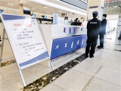 “你好!違章查詢和罰款繳納需要去交管隊(duì),不在這里辦理。如果是本人車輛,也可下載12123 APP進(jìn)行辦理?!?月18日9時(shí)10分,記者走進(jìn)呼和浩特市交警支隊(duì)車輛管理所,在政務(wù)服務(wù)中心東大廳正對(duì)著大門的導(dǎo)辦臺(tái),一位民警正在接受市民業(yè)務(wù)咨詢。記者看到,大廳里往日喧囂熱鬧的場(chǎng)景不見了,只有零星幾位市民在辦理業(yè)務(wù)。