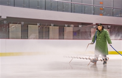 30日上午,呼和浩特晚報(bào)記者在呼和浩特體育中心看到,約1700平方米的冰場(chǎng)正在鋪設(shè)中。呼和浩特體育中心運(yùn)營(yíng)部部長(zhǎng)劉超介紹:“隨著冬奧會(huì)的臨近,市民對(duì)冰雪運(yùn)動(dòng)的期盼也越來(lái)越強(qiáng)烈。為此,我們籌措材料,將室內(nèi)的一塊兩用場(chǎng)地進(jìn)行轉(zhuǎn)換。這個(gè)場(chǎng)地的水泥層下設(shè)有地冷設(shè)施,會(huì)把場(chǎng)地凍住,十分安全。目前我們正對(duì)冰場(chǎng)噴灑乳色漆面,預(yù)計(jì)12月4日就能向市民開放?!?/p>