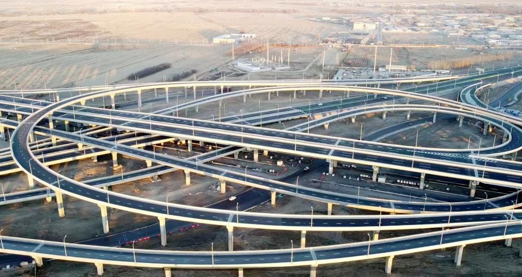 這是中建鐵投集團建設(shè)的呼和浩特市三環(huán)路呼準立交。 王寧攝