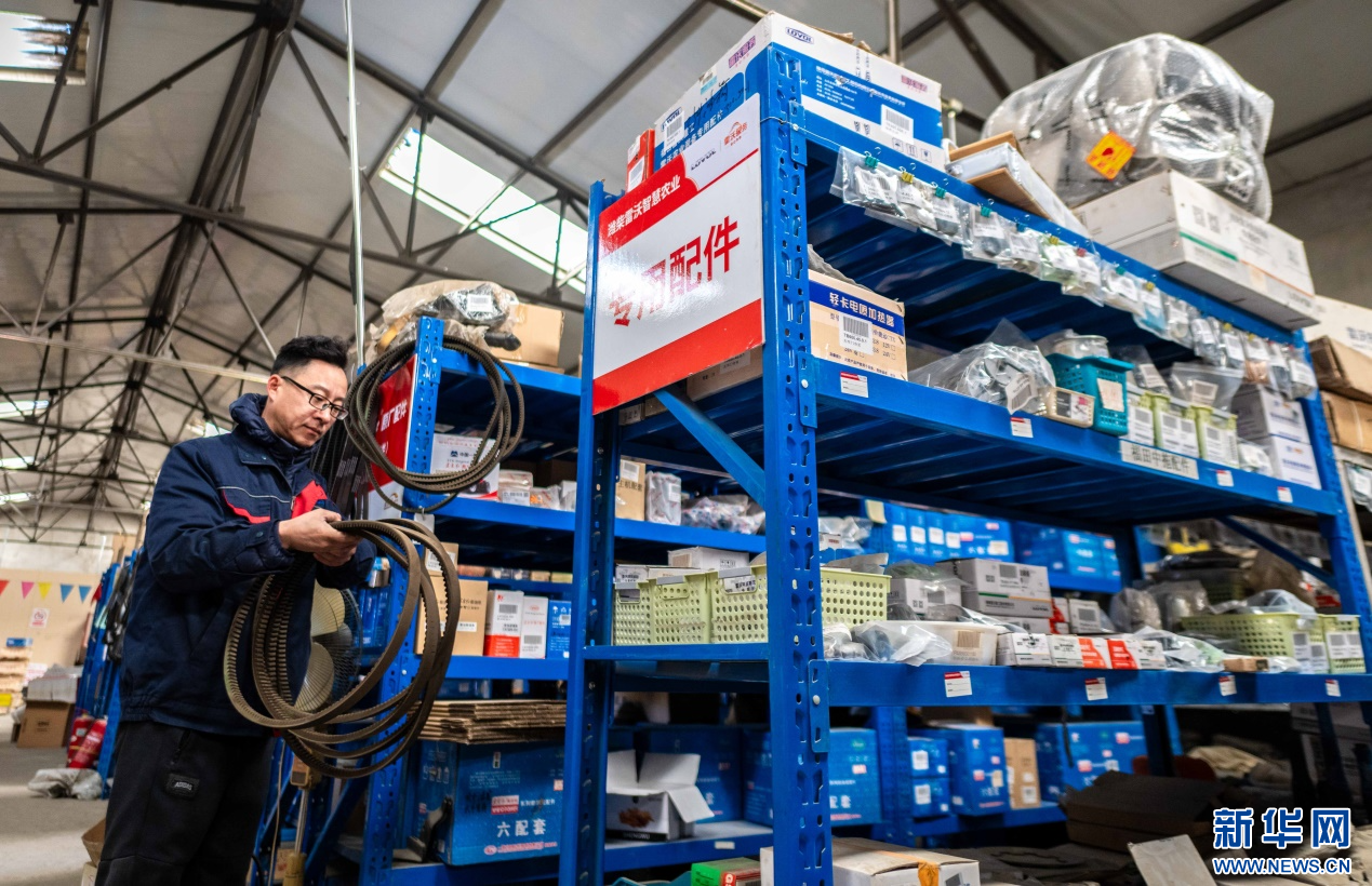 ??2月18日,在位于呼和浩特市玉泉區(qū)的一家農機設備公司倉庫,工作人員在清點農機具配件。新華網(wǎng)發(fā)(丁根厚 攝)