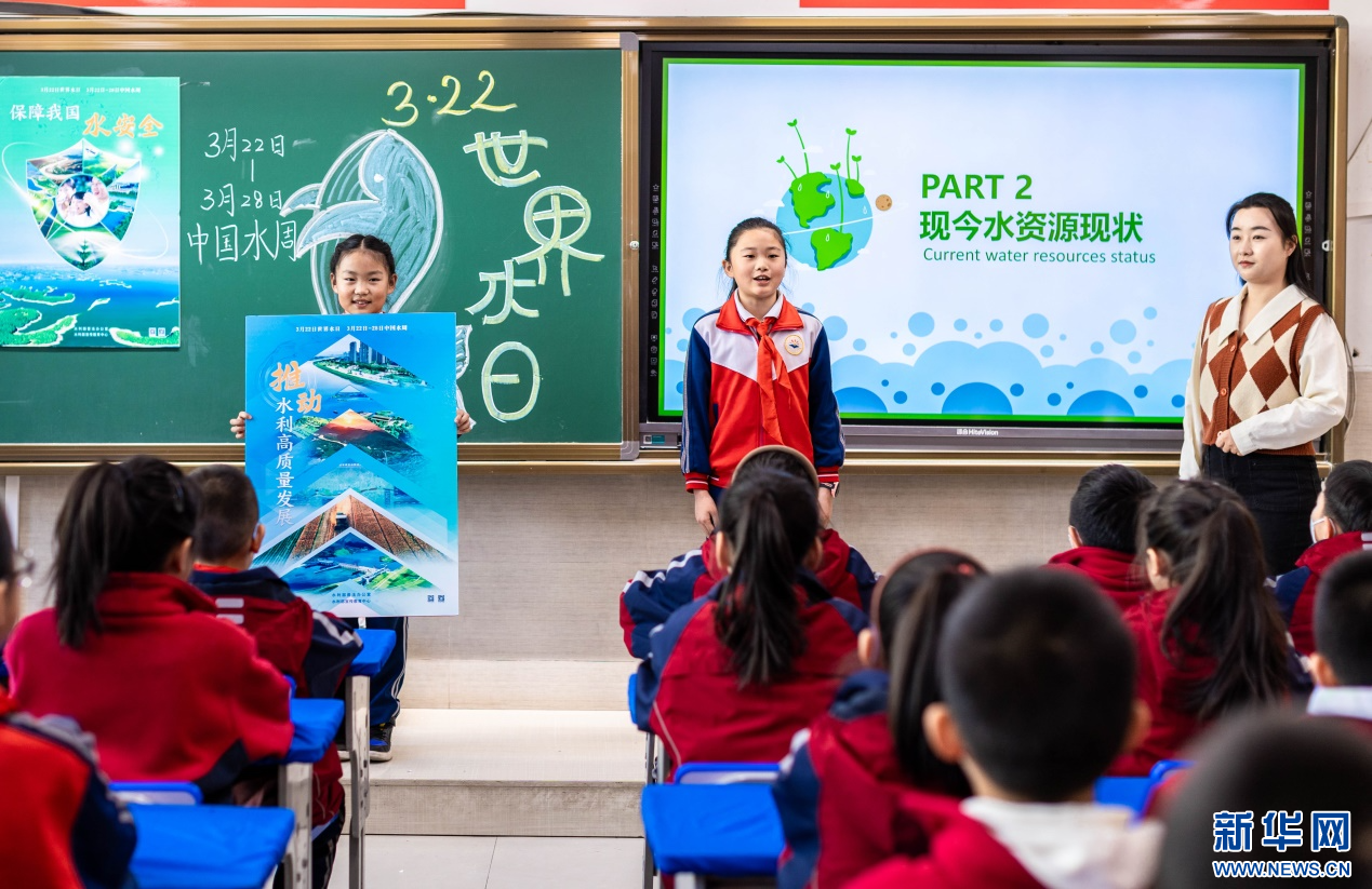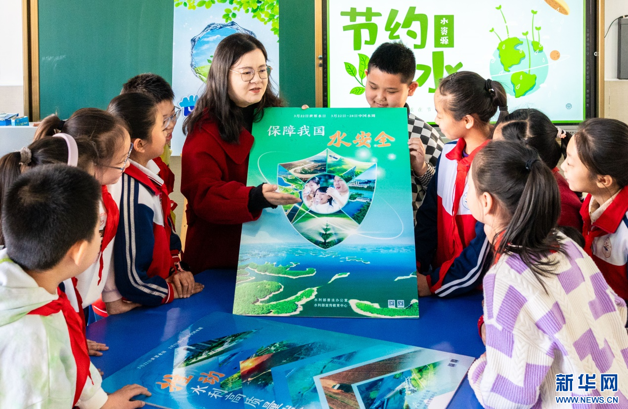 ??3月20日,呼和浩特市玉泉區(qū)石東路小學老師向?qū)W生們講解“保障我國水安全”等知識。新華網(wǎng)發(fā)(丁根厚 攝)