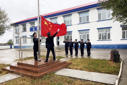 9月18日上午,內(nèi)蒙古塔日根諾爾邊境派出所舉辦升國旗儀式,紀(jì)念“九一八”事件89周年。