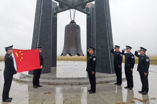 上午8時(shí)整,在塔日根諾爾邊境派出所,伴隨著雄壯的國歌聲,五星紅旗冉冉升起,全體民警肅然挺立,向在抗日戰(zhàn)爭中死難的同胞默哀。在諾門罕戰(zhàn)役紀(jì)念廣場的和平大鐘前,諾門罕布日德邊境派出所民警面向國旗,舉起右手,重溫人民警察誓詞,錚錚誓言響徹天際,感染并激勵(lì)著民警扎根北疆、建功北疆。巡邊途中,額布德格邊境派出所民警為界碑拭去灰塵,以獨(dú)有的方式向無數(shù)為國捐軀的革命烈士致以崇高敬意。罕達(dá)蓋邊境派出所組織觀看了《九一八事變》,通過觀影,警醒民警時(shí)刻銘記使命職責(zé),勿忘國恥,發(fā)奮圖強(qiáng)。