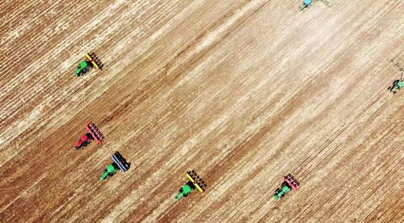 2022年4月28日,農(nóng)機(jī)手駕駛農(nóng)機(jī)在內(nèi)蒙古自治區(qū)扎蘭屯市呼倫貝爾農(nóng)墾大河灣農(nóng)牧場公司田間進(jìn)行春耕播種。2022年4月28日,位于內(nèi)蒙古自治區(qū)呼倫貝爾市扎蘭屯市的呼倫貝爾農(nóng)墾大河灣農(nóng)牧場公司春播開犁。該公司先后引進(jìn)國際高端先進(jìn)大型農(nóng)機(jī)設(shè)備,通過北斗導(dǎo)航、無人駕駛等現(xiàn)代科技應(yīng)用,積極打造智慧農(nóng)業(yè)發(fā)展新模式,全面提高作業(yè)效率和質(zhì)量,促進(jìn)農(nóng)業(yè)增產(chǎn)增收。(韓冷 田林鑫)