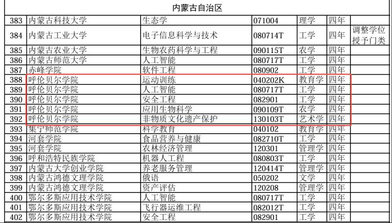 近日,教育部公布了《2024年度普通高等學(xué)校本科專(zhuān)業(yè)備案和審批結(jié)果》,其中,呼倫貝爾學(xué)院申報(bào)的“運(yùn)動(dòng)訓(xùn)練”(專(zhuān)業(yè)代碼040202K,教育學(xué))、“人工智能”(專(zhuān)業(yè)代碼080717T,工學(xué))、“安全工程”(專(zhuān)業(yè)代碼082901,工學(xué))、“應(yīng)用生物科學(xué)”(專(zhuān)業(yè)代碼090109T,農(nóng)學(xué))、“非物質(zhì)文化遺產(chǎn)保護(hù)”(專(zhuān)業(yè)代碼130103T,藝術(shù)學(xué))5個(gè)本科專(zhuān)業(yè)成功獲批。本次備案和審批的相關(guān)專(zhuān)業(yè),擬列入該校2025年本科招生計(jì)劃。