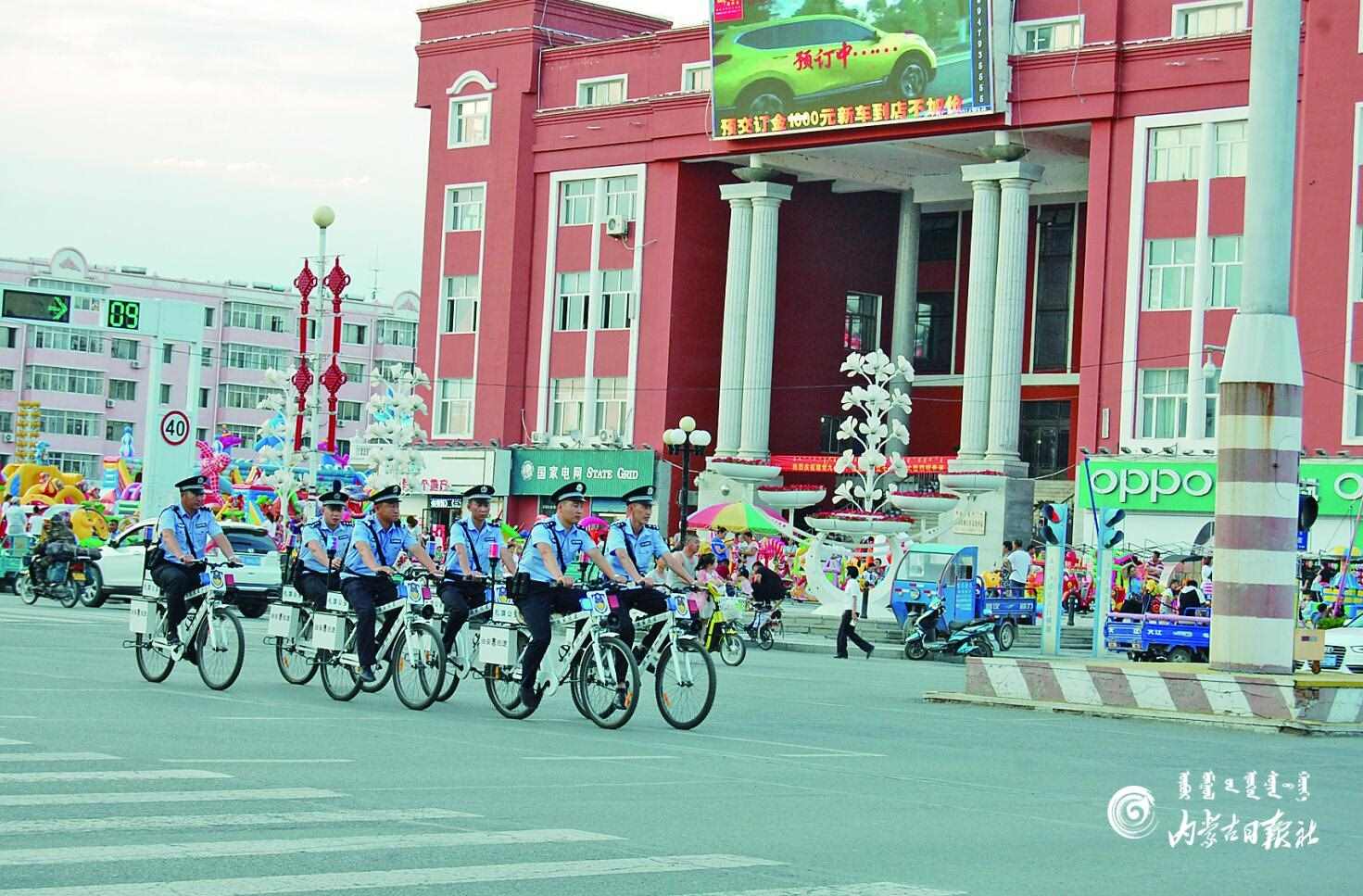 興安盟扎賚特旗公安局民警騎自行車在主干道巡邏。為確保社會面 安全穩(wěn)定,每晚7點至9點,民警上街開展巡邏防控,及時發(fā)現(xiàn)安全隱患,增 強群眾安全感。 李健 攝