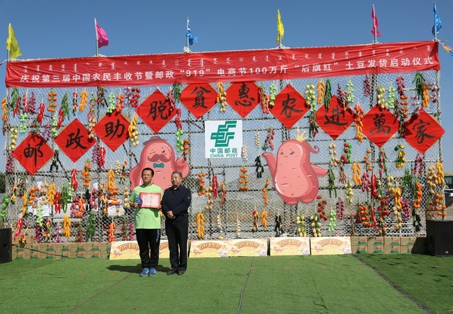 張偉)“今年計(jì)劃銷售100萬(wàn)斤‘后旗紅’馬鈴薯?!?月20日,慶祝第三屆中國(guó)農(nóng)民豐收節(jié)暨中國(guó)郵政“919電商節(jié)”100萬(wàn)斤“后旗紅”馬鈴薯發(fā)貨儀式,在內(nèi)蒙古烏蘭察布市察右后旗烏蘭哈達(dá)蘇木朝陽(yáng)村舉行。中國(guó)郵政集團(tuán)烏蘭察布市分公司副總經(jīng)理朱學(xué)勇接受記者采訪時(shí)表示,作為中國(guó)郵政集團(tuán)在內(nèi)蒙古地區(qū)打造的唯一“一省一品”特色農(nóng)產(chǎn)品品牌“后旗紅”,2018年銷售12萬(wàn)斤,2019年銷售52萬(wàn)斤,“后旗紅”馬鈴薯搭乘郵政綠色快車,走向全國(guó)各地,已經(jīng)成為消費(fèi)者心目中的網(wǎng)紅產(chǎn)品。