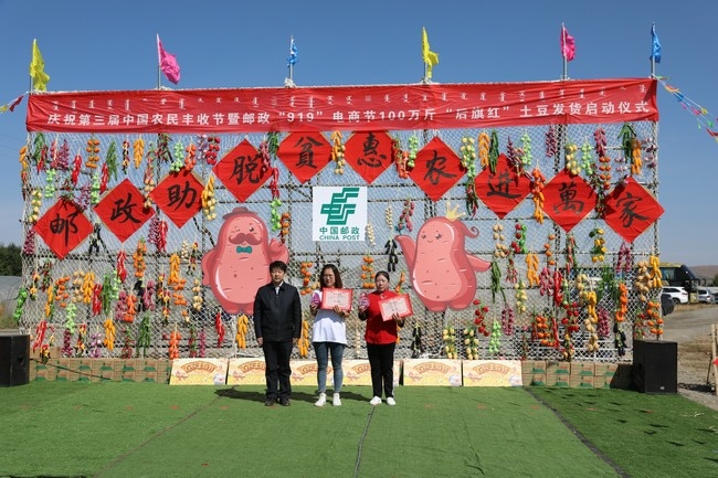 據(jù)介紹,“919電商節(jié)”,是中國(guó)郵政集團(tuán)公司利用線上電商平臺(tái),開展農(nóng)產(chǎn)品進(jìn)城、助力農(nóng)民脫貧致富的惠民活動(dòng)。今年活動(dòng)期間,擬銷售“后旗紅”土豆100萬(wàn)斤,可以讓一家扶貧龍頭企業(yè)、一家合作社、500多戶農(nóng)牧戶受益。其中北方馬鈴薯批發(fā)市場(chǎng)帶動(dòng)200戶貧困戶參與集體分紅,戶均增收1000元;高價(jià)收購(gòu)15戶貧困戶、20戶農(nóng)戶馬鈴薯20萬(wàn)斤,戶均增收1600元;直接間接帶動(dòng)務(wù)工人員265人,人均增收420元;活動(dòng)期間將為28戶農(nóng)戶提供免費(fèi)耕作服務(wù),免費(fèi)耕作土地總畝數(shù)940畝,幫助28戶農(nóng)戶節(jié)省開支42300元,戶均節(jié)省1511元。