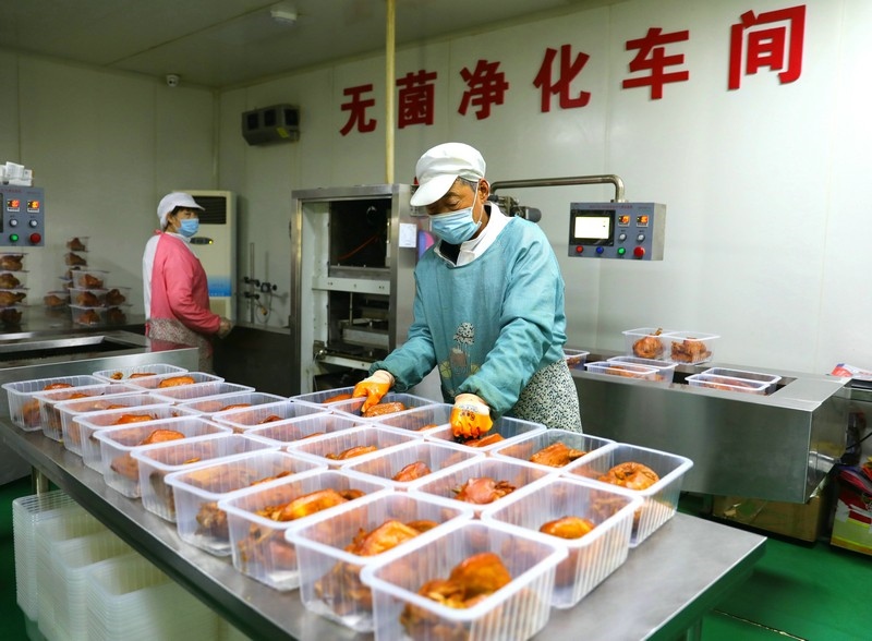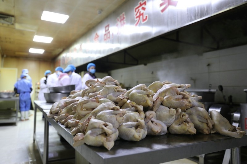 當(dāng)日上午,媒體團成員進(jìn)入加工車間實地了解熏雞、熏蛋、熏肉等特色產(chǎn)品生產(chǎn)加工過程。據(jù)了解,卓資縣的熏雞每年銷量約為400萬只,產(chǎn)值2個億,帶動了當(dāng)?shù)厝罕娒撠氈赂?,是真正的富民強縣產(chǎn)業(yè)。目前,卓資熏雞在繼承傳統(tǒng)工藝的基礎(chǔ)上,引進(jìn)鎖鮮包裝,使熏雞保鮮期由原來的7天增加到15天,并進(jìn)入電商平臺面向全國銷售。