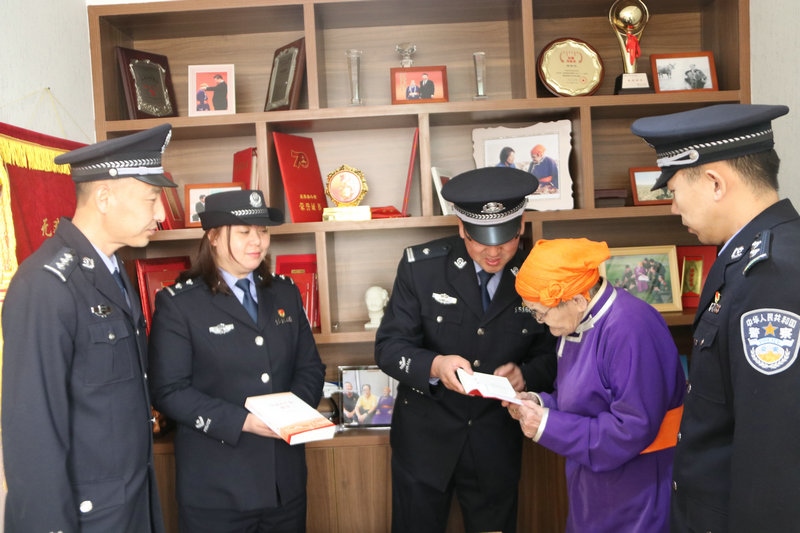 5月6日上午,民警們手捧鮮花來到都貴瑪老人家。一進家門,便為都貴瑪老人送上了節(jié)日的祝福。民警們與都貴瑪老人嘮起了家常,詳細詢問老人的身體狀況和生活情況。大家你一言,我一語,聊著聊著,就談到了當前開展的黨史學習教育。民警們把自己的學習體會和收獲一一向都貴瑪老人作了匯報。都貴瑪老人說,自己也通過觀看《新聞聯(lián)播》了解到國家十四五開局之年和全黨開展黨史學習教育的相關內容。特別是看到民警們帶來的黨史書籍時,都貴瑪老人和大家講述了他們那一代人如何利用蒙文版書籍學習黨章黨史的故事,再次回顧了習近平總書記為她授予“人民楷模”國家榮譽稱號獎章時的自豪和激動。