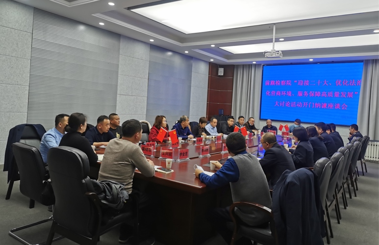 會上傳達(dá)了全區(qū)優(yōu)化營商環(huán)境的會議精神,通報了察右前旗人民檢察院“迎接二十大、優(yōu)化法治化營商環(huán)境、服務(wù)保障高質(zhì)量發(fā)展”大討論活動開展情況,介紹了院黨組下一步優(yōu)化法治化營商環(huán)境工作計劃,并希望與會代表暢所欲言,就企業(yè)發(fā)展中遇到的問題和困難以及察右前旗人民檢察院在優(yōu)化法治化營商環(huán)境方面存在的不足進(jìn)行座談交流?!?/p>