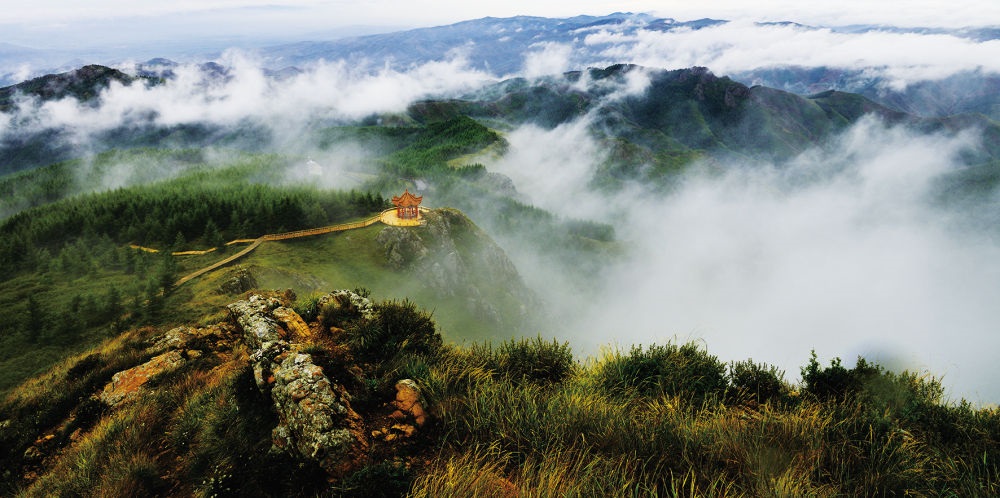 山梁草原上,可乘小火車參觀濕地、湖泊、山地典型草原等多種地貌。青藏高原牦牛喜食的特有植物在這里成片發(fā)育,而在我國華北、東北其他地區(qū),這種亞高山3000米以上地域特有植被類型均無分布。梁上還分布著星羅棋布的大小湖泊,人稱“九十九泉”。