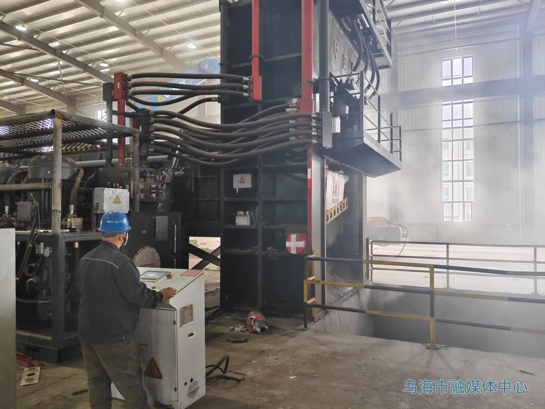 近日,記者來到位于烏海海勃灣高新技術產(chǎn)業(yè)開發(fā)區(qū)的內(nèi)蒙古萬斯通環(huán)保再生資源回收有限公司,走進廢鋼車間,龍門剪、抓鋼機、電磁起重機等交叉作業(yè),機械轟鳴聲與金屬撞擊聲、破碎聲不絕于耳。
