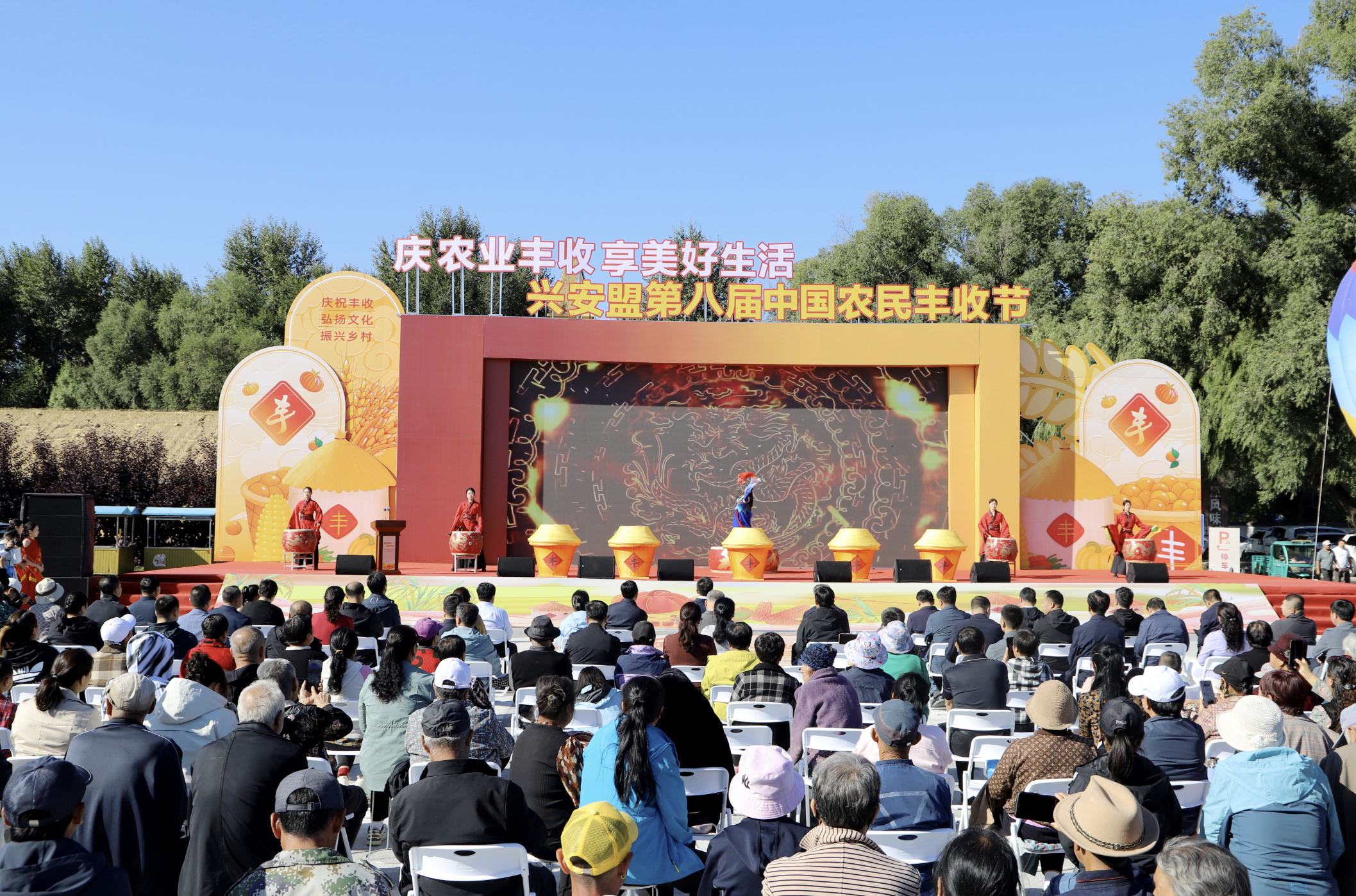 稻浪飄金歌歲稔,果林綴玉頌?zāi)曦S。金秋九月,興安大地稻浪翻滾、瓜果飄香,處處洋溢著豐收的喜悅。9月21日,第八屆“中國(guó)農(nóng)民豐收節(jié)”興安盟主會(huì)場(chǎng)活動(dòng)在烏蘭浩特市義勒力特鎮(zhèn)義勒力特嘎查群眾文化生活廣場(chǎng)舉行。農(nóng)牧民朋友歡聚在一起,共慶豐收、共享喜悅、共迎盛會(huì)。