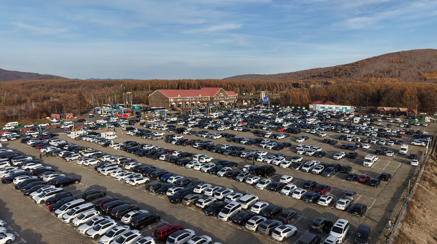阿爾山自駕游車(chē)輛在景區(qū)停車(chē)場(chǎng)