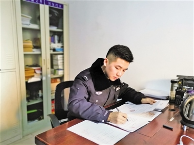 “我當(dāng)人民警察還不到一年,沒想到就趕上了中國(guó)人民警察節(jié),太榮幸了。在這里,我祝愿所有的人民警察節(jié)日快樂,平平安安。”1月8日,呼和浩特市新城區(qū)公安分局西街派出所治安民警楊國(guó)清激動(dòng)地說。2020年4月,23歲的楊國(guó)清正式成為西街派出所的一名治安民警,出警處警、處理案件成為他的日常工作。入職前,警校畢業(yè)再加上經(jīng)過一段時(shí)間的實(shí)習(xí),楊國(guó)清認(rèn)為這些工作應(yīng)該很容易,可當(dāng)他真正走上工作崗位后才發(fā)現(xiàn),并不像自己想象的那么簡(jiǎn)單,需要學(xué)習(xí)的地方還很多。在工作中,他總是比別人多付出一份辛苦,不斷學(xué)習(xí),不斷請(qǐng)教,在實(shí)踐中積累經(jīng)驗(yàn),增強(qiáng)業(yè)務(wù)能力?!爱?dāng)作完第一份筆錄,簽上自己名字的那一刻,我才真正感覺到自己肩上的責(zé)任重大。”楊國(guó)清告訴記者。除了日常處理案件外,楊國(guó)清和搭檔3天值一次班,一值就是24小時(shí)。只要接到報(bào)警,他們會(huì)第一時(shí)間趕到現(xiàn)場(chǎng)進(jìn)行處理。打架斗毆、偷盜搶劫、鄰里糾紛……無論是深夜還是凌晨,哪里有警情他們就奔向哪里。警察的工作不僅辛苦還很危險(xiǎn),與家人也聚少離多。當(dāng)記者問到是否后悔選擇這個(gè)職業(yè)時(shí),楊國(guó)清堅(jiān)定地說:“我從小的夢(mèng)想就是當(dāng)一名警察,保護(hù)人民、扶危救困,全力以赴維護(hù)一方平安。每當(dāng)聽到一句感謝的話時(shí),我覺得一切付出都是值得的?!?/p>