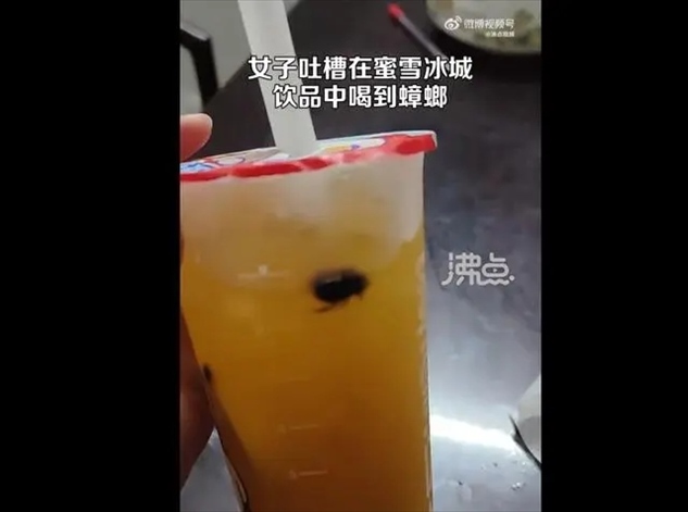 ·廣東一女子稱在蜜雪冰城中喝到大蟑螂,店家:正在核查,后續(xù)會(huì)給顧客交代。