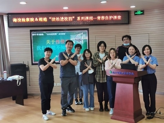北京市海淀區(qū)人民檢察院與北京超越青少年社工事務(wù)所聯(lián)合開展“法治進(jìn)校園”系列活動(dòng),為同學(xué)們講解青春自護(hù)知識(shí)。北京超越青少年社工事務(wù)所供圖