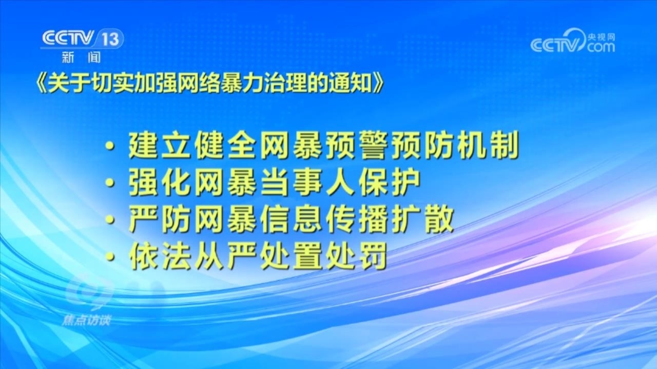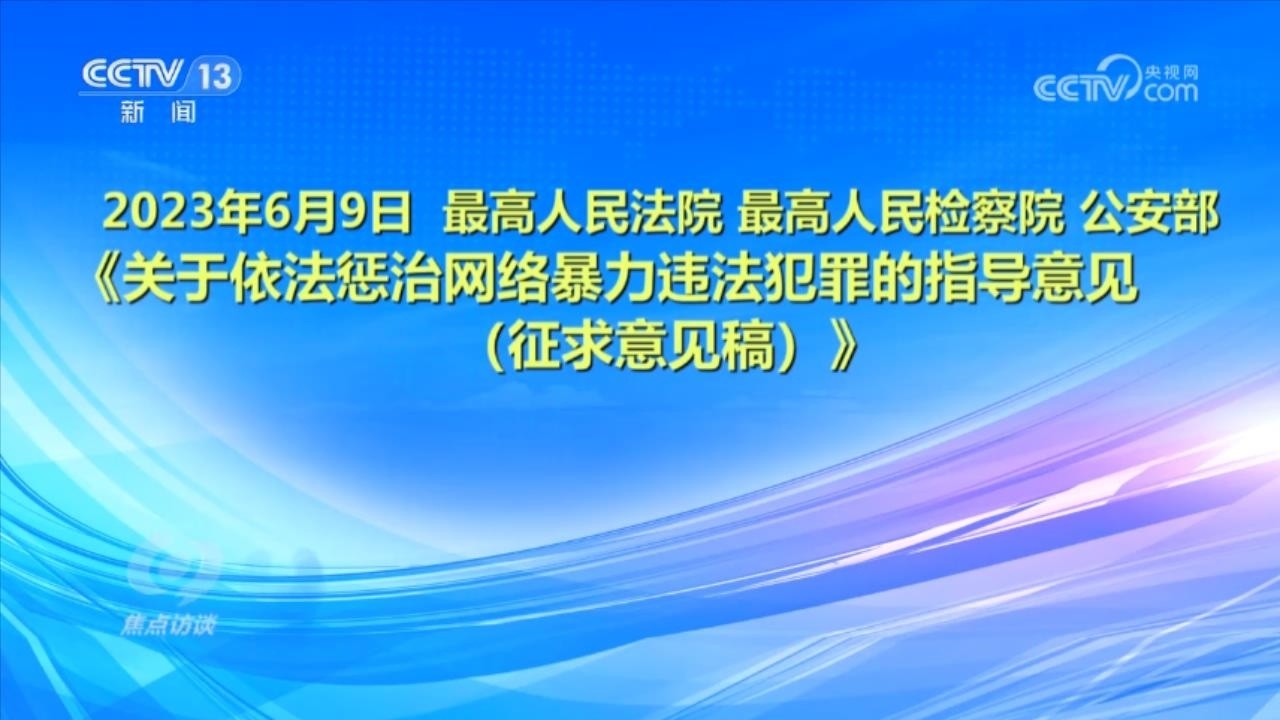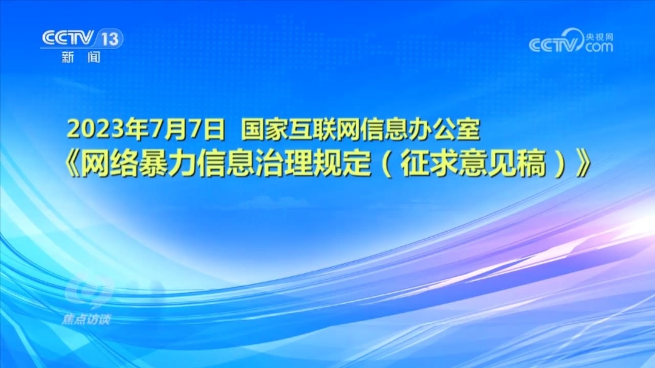 央視網(wǎng)消息(焦點訪談):俗話說“舌上有龍泉,殺人不見血”。網(wǎng)絡(luò)暴力不同于現(xiàn)實中的拳腳相加,但是這些在網(wǎng)絡(luò)空間中用文字、圖片等方式進行的傷害和侮辱,一樣可以對當事人的現(xiàn)實生活產(chǎn)生惡劣的影響,讓當事人的心靈“流血”。在傷害當事人的同時,網(wǎng)絡(luò)暴力行為也嚴重污染了互聯(lián)網(wǎng)環(huán)境,影響社會和諧穩(wěn)定。近日,國家互聯(lián)網(wǎng)信息辦公室起草了《網(wǎng)絡(luò)暴力信息治理規(guī)定(征求意見稿)》,向社會公開征求意見;同樣是針對網(wǎng)絡(luò)暴力,在6月,最高人民法院、最高人民檢察院、公安部起草了《關(guān)于依法懲治網(wǎng)絡(luò)暴力違法犯罪的指導意見(征求意見稿)》,面向社會公開征求意見。治理網(wǎng)絡(luò)暴力這顆“毒瘤”,營造良好生態(tài)勢在必行。