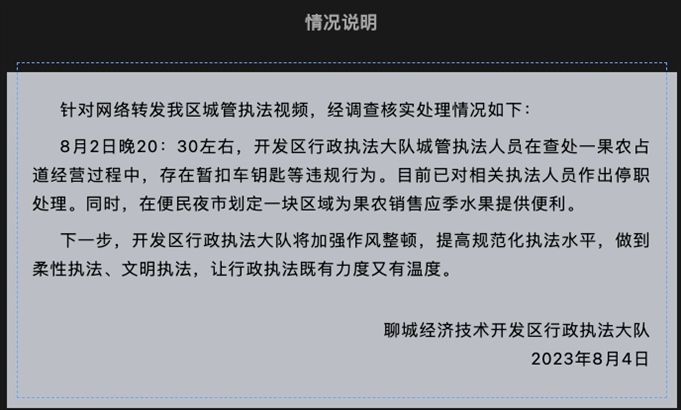 ·山東聊城通報“城管拔走小販車鑰匙”:相關執(zhí)法人員停職。