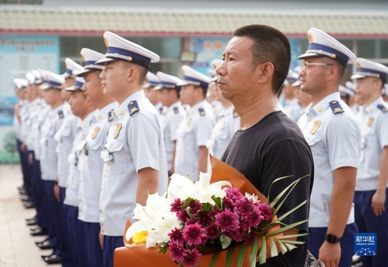 8月4日,在強降雨搶險救災中壯烈犧牲的馮振烈士遺體告別儀式在北京八寶山殯儀館舉行。