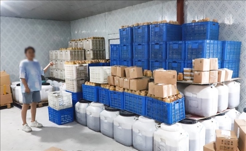 ▲涼山警方查獲的涉案蜂蜜
