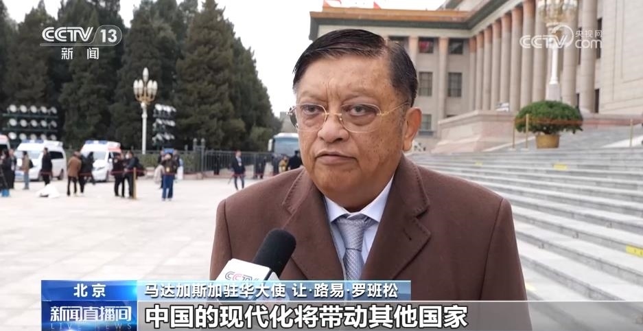 馬達(dá)加斯加駐華大使 讓·路易·羅班松:中國的現(xiàn)代化發(fā)展很好,中國的現(xiàn)代化將帶動(dòng)其他國家,尤其是發(fā)展中國家的現(xiàn)代化。中國有關(guān)世界和平的立場主張也會(huì)更加受到全世界的關(guān)注。