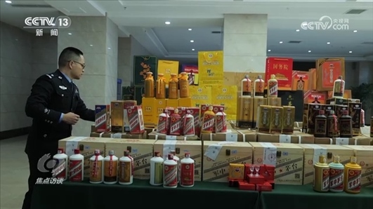 曾光:“我們在全國五個省市開展了相關(guān)全面收網(wǎng)工作,一共抓獲犯罪嫌疑人54名,搗毀生產(chǎn)灌裝窩點(diǎn)三個、銷售經(jīng)營場所三個、倉儲倉庫三個,現(xiàn)場查扣成品的知名假酒一共接近11600瓶。”
