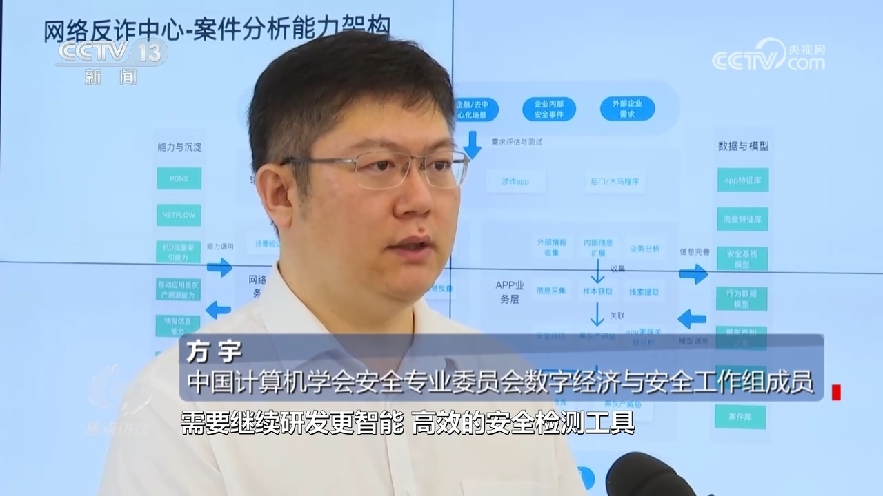 方宇:“下一步,針對(duì)涉詐APP的發(fā)現(xiàn),需要繼續(xù)研發(fā)更智能、高效的安全檢測(cè)工具,建立涉詐APP的黑名單數(shù)據(jù)庫。另外,結(jié)合一些新型、智能化的技術(shù)手段,通過對(duì)網(wǎng)絡(luò)流量分析,及時(shí)發(fā)現(xiàn)詐騙流量,并通過公安、網(wǎng)信、金融、市場(chǎng)監(jiān)管等部門進(jìn)一步加強(qiáng)聯(lián)動(dòng)、信息及時(shí)共享、及時(shí)進(jìn)行阻斷,多措并舉,共同努力,形成合力,打擊涉詐APP?!?/p>