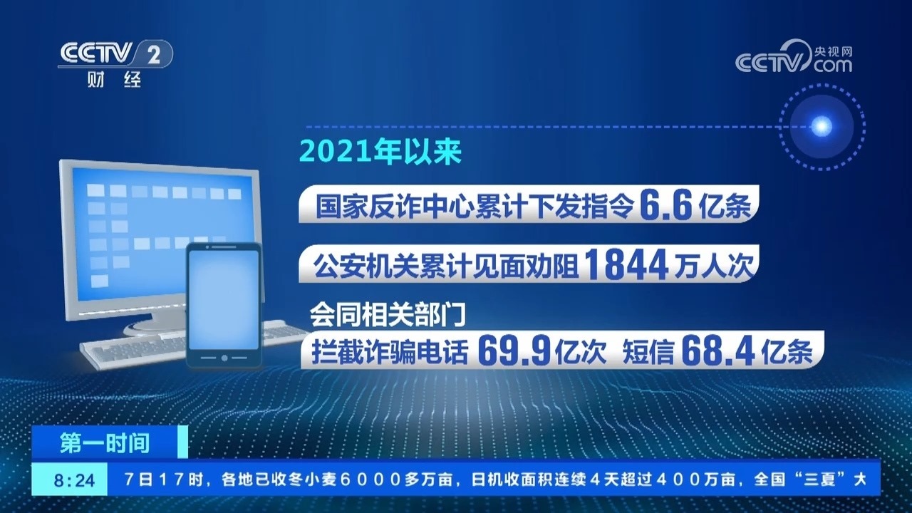 公安機關持續(xù)推進預警勸阻和技術反制工作。2021年以來,國家反詐中心累計下發(fā)指令6.6億條,公安機關累計見面勸阻1844萬人次,會同相關部門攔截詐騙電話69.9億次、短信68.4億條,處置涉案域名網(wǎng)址1800萬個,緊急攔截涉案資金1.1萬億元。
