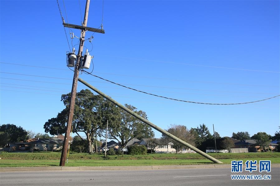 這是10月29日在美國(guó)路易斯安那州新奧爾良拍攝的颶風(fēng)“澤塔”刮歪的電線桿。新華社發(fā)(魏蘭攝)