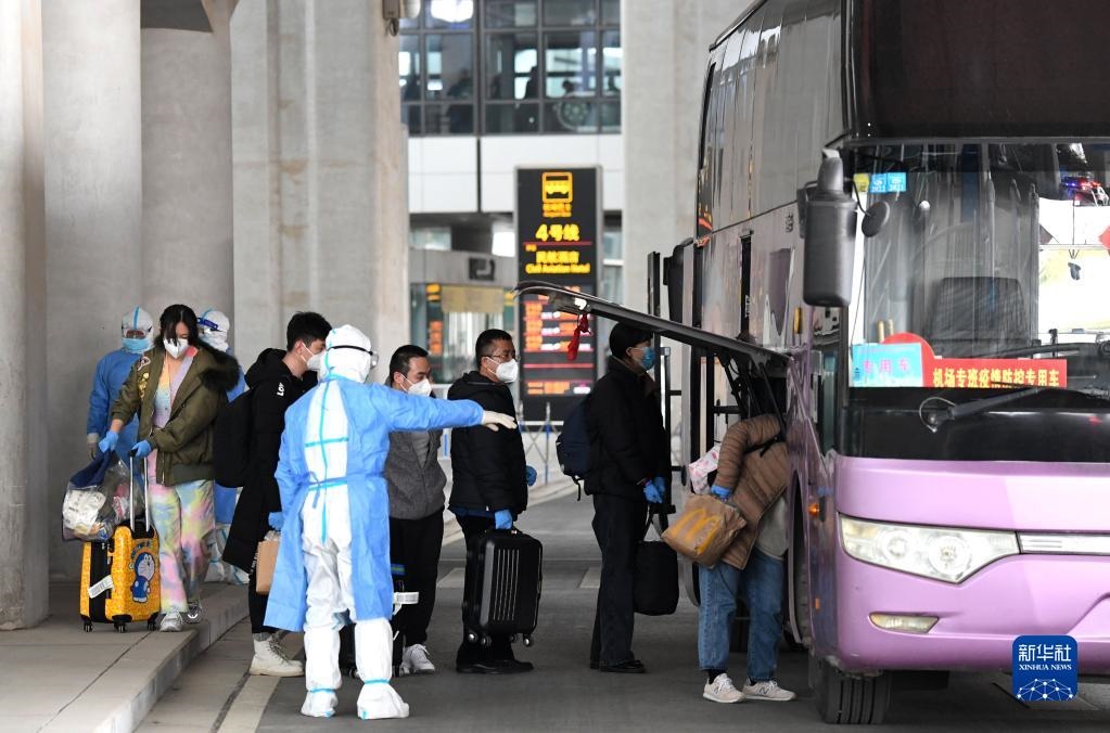 3月5日,抵達鄭州新鄭國際機場的中國公民準備前往隔離酒店。當日上午9時46分,第二架接返自烏克蘭撤離中國公民臨時航班安全抵達鄭州。新華社記者 郝源 攝