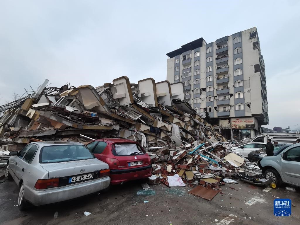 這是2月7日在土耳其卡赫拉曼馬拉什拍攝的一處倒塌的建筑(手機(jī)照片)。新華社記者 李振北 攝